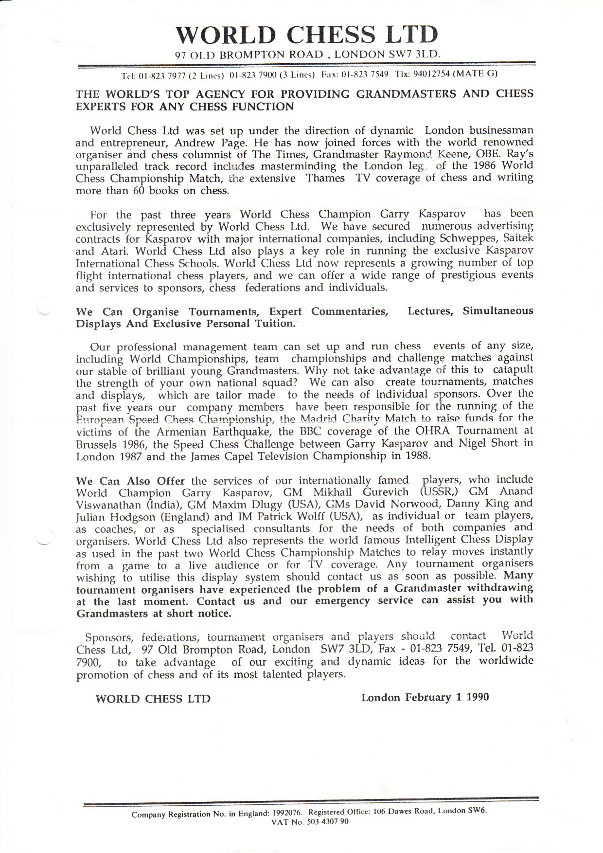 - “World Chess Ltd” was another organization with which Raymond Keene was associated: