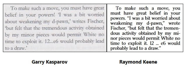 On 9 March 2014 Garry Kasparov confirmed in a Twitter message that he had been plagiarized by Raymond Keene: